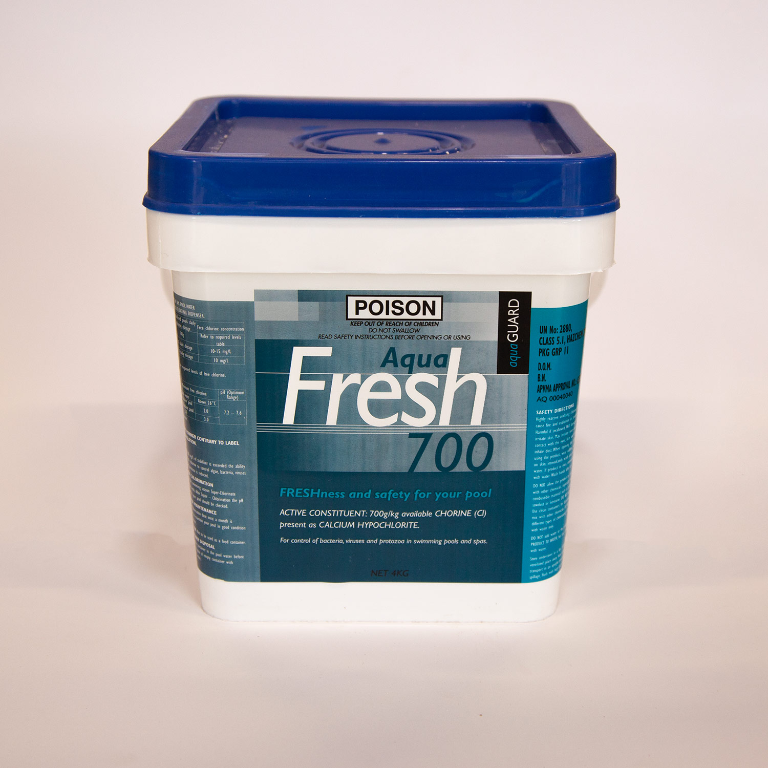 Freshness and safety for your pool: Active Constituent: 700g/kg available Chlorine (Cl) present as Calcium Hypochlorite. For control of bacteria, viruses and protozoa in swimming pools and spa