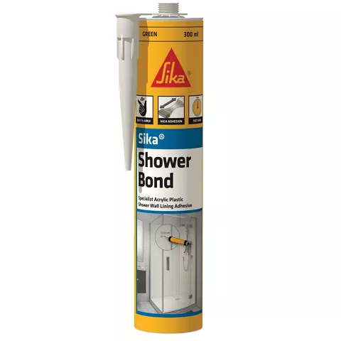 Specialist acrylic plastic shower wall lining adhesive.